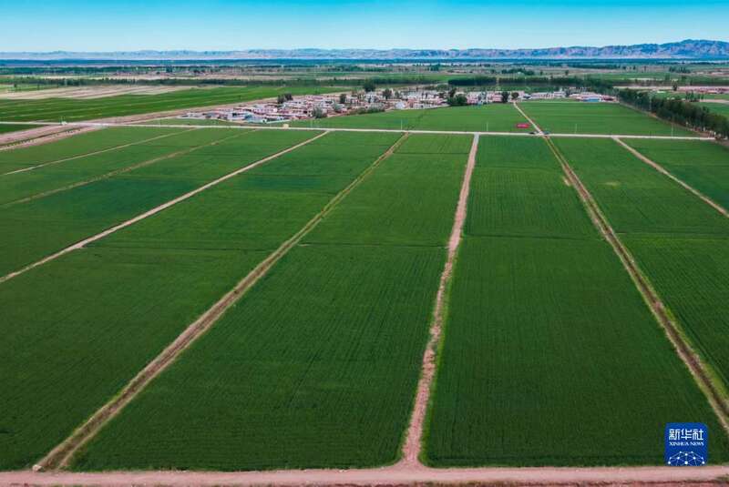 这是内蒙古五原县新公中镇小麦种植基地(2022年6月22日摄,无人机照片)。