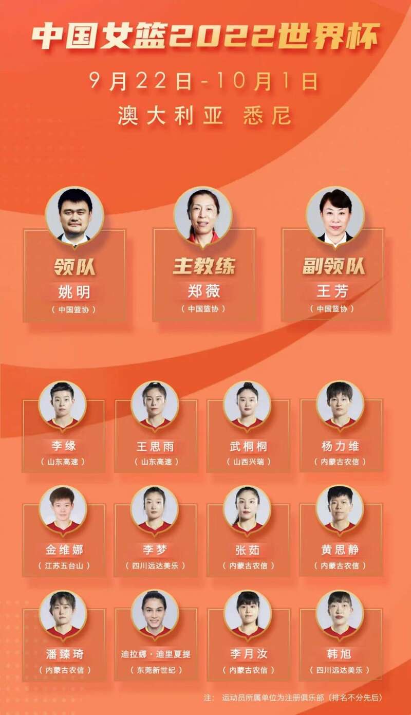20日,中国女篮公布了2022年女篮世界杯参赛名单。根据赛程,本届女篮世界杯将于9月22日-10月1日在澳大利亚悉尼举行,中国队与美国队、比利时队、波黑队、韩国队和波多黎各队同在A组。中国队首场比赛将于9月22日15∶30对阵韩国队,让我们共同关注,为女篮姑娘们加油!