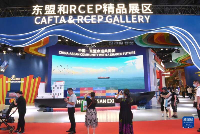 9月19日,观众在东博会东盟和RCEP精品展区参观。