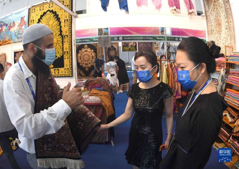 9月19日,观众在东博会上挑选巴基斯坦商品。