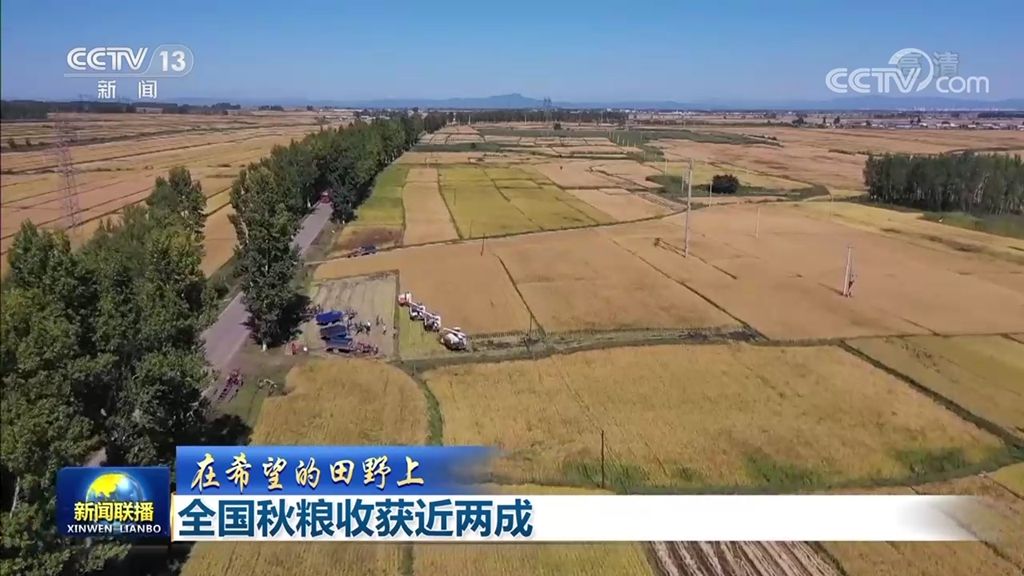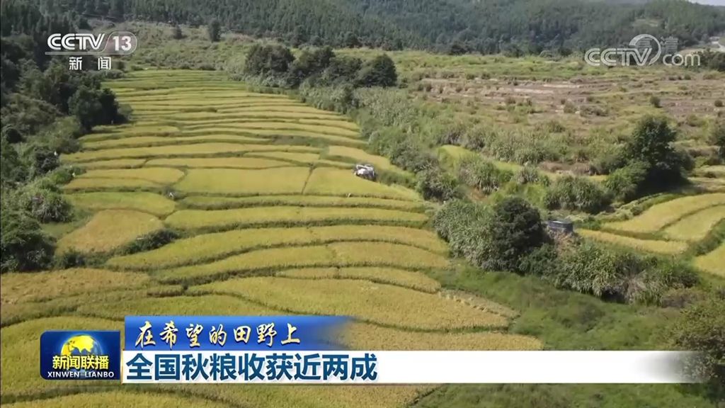 央视网消息(新闻联播):农业农村部最新农情调度显示,目前全国秋粮收获近两成,各地抢抓晴好天气开展机收作业,确保粮食颗粒归仓。