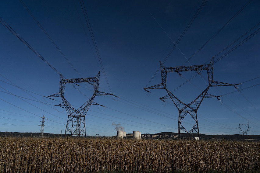 当地时间2022年9月12日,法国圣维尔巴斯,核电站附近的田地里,树立的电线杆。人民视觉 资料图