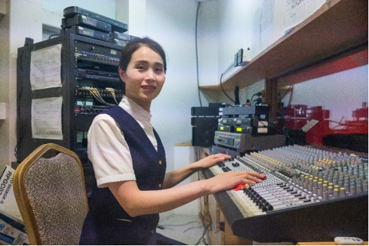 在会议召开过程中,调音台的正常运行是非常重要的一个环节,而陈维静则是相关的“专家”。会议筹备阶段的调试、会议现场的使用,离不开陈维静和团队在背后的共同努力。