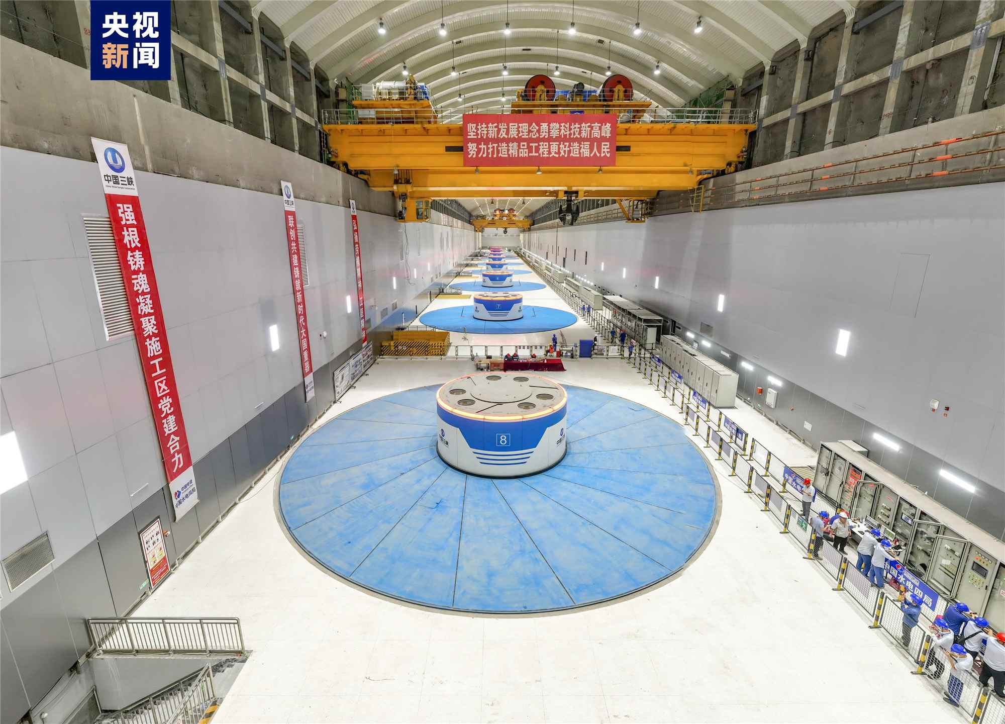 白鹤滩水电站共安装16台单机容量100万千瓦水轮发电机组,其中1号至8号机组布置在左岸厂房,9号至16号机组布置在右岸厂房。本次投产的8号机组是白鹤滩水电站投产发电的第12台百万千瓦水轮发电机组。