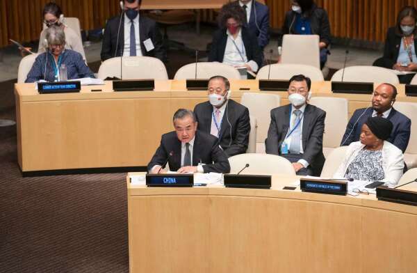 当地时间2022年9月21日,习近平主席特别代表、国务委员兼外长王毅在纽约联合国总部出席气候变化高级别会议并致辞。