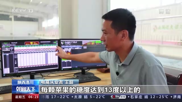 陕西洛川电商从业者 王超:好吃为主,第二是好看,这两个标准作为我们入库、入箱的标准。所有的苹果都可以做一个“X光”。一个苹果可以拍出120张的图片。通过4.0(智能)分选线把每颗苹果的颜色、糖度、克重,包括人肉眼看不到的霉心果,都可以一一分选出来。