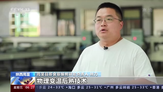 陕西周至县即食猕猴桃研发负责人 姚力:物理变温后熟技术,让果子从有淀粉的状态下转化为糖的一个过程,它就可以做到消费者拿到手里直接可以食用。
