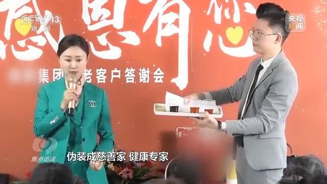所谓大集团的运营总监是冒牌的,台上这些能说会道、派头十足的“保健协会会长”“养生专家”实际上是一群社会闲散人员,经过犯罪团伙专业培训,伪装成慈善家、健康专家、企业高管等成功人士,通过既定“话术”的宣讲,诱骗老年人高价购买保健品,从中提成牟利。