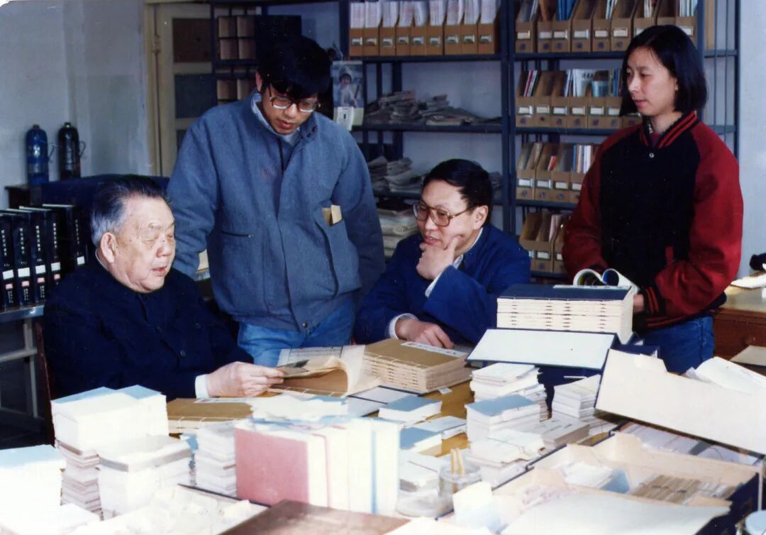 邓广铭先生与学生讨论问题(左二至左四:荣新江、李孝聪、张小舟)