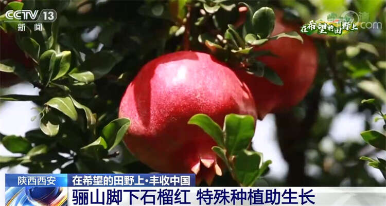 在秦岭骊山脚下,陕西西安临潼区的石榴陆续进入采摘季。这里的石榴个头硕大、色泽鲜亮,像一颗颗红灯笼挂满枝头。与其他地方石榴种植不同,这里的种植户在挂果期会用透明袋包裹果子,石榴在生长期内自然产生的水分集结在袋中,石榴就在水分的滋养下长大,使其口感更好、籽肥多汁。