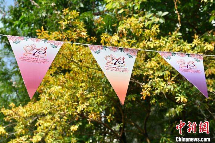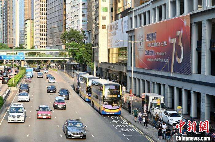 随着国庆将近,香港街头庆祝国庆气氛逐渐浓厚。9月22日,位于香港湾仔、铜锣湾、北角街头挂有国旗及特区区旗,以及庆祝中华人民共和国成立73周年的海报、彩旗,一片喜庆祥和气氛。(记者 李志华)