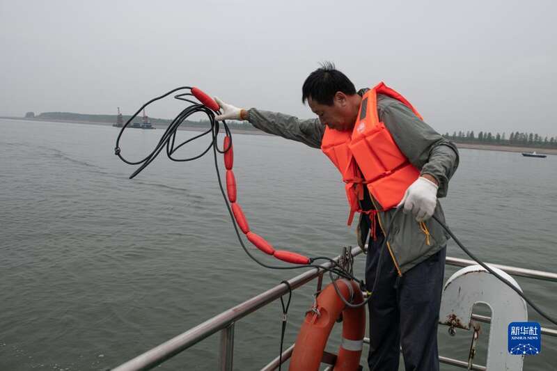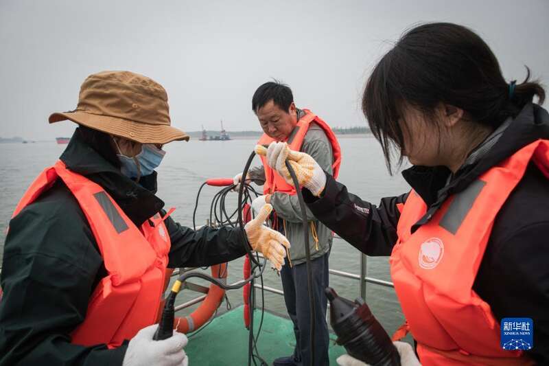 9月23日,科考人员在湖北石首水域通过微型声信号记录仪进行探测工作。