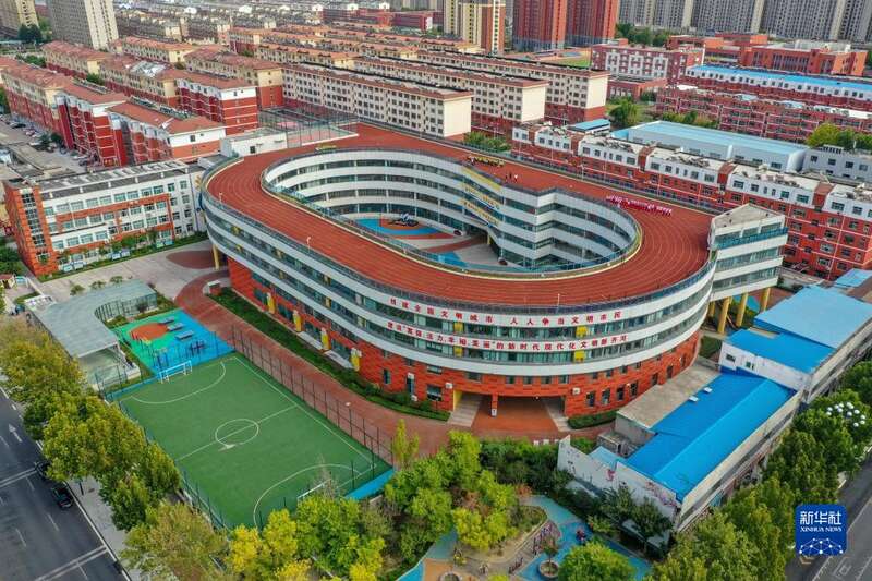 这是9月20日拍摄的齐河县第六小学。这所地处闹市的学校将地下停车、地上教学、运动场地分层穿插布局巧妙融合,节地率达到54%。