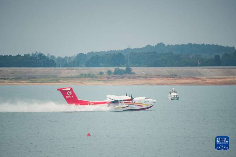 9月27日,“鲲龙”AG600M在水上滑行起飞。