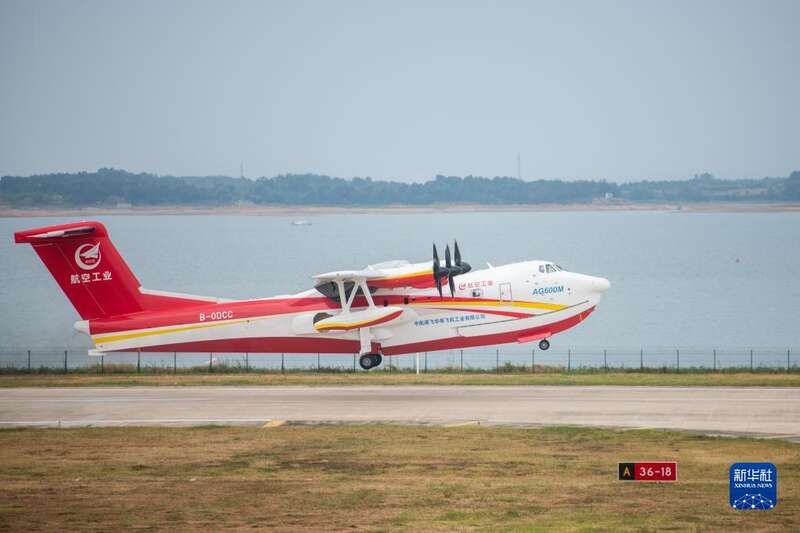 9月27日,“鲲龙”AG600M从漳河机场滑行起飞。