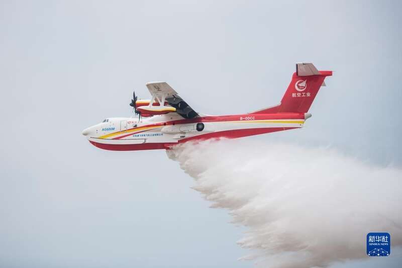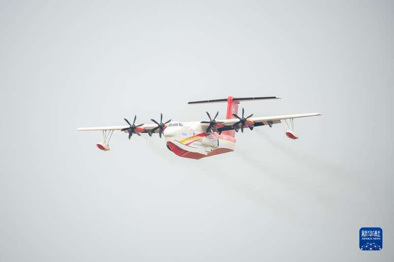 9月27日,“鲲龙”AG600M在进行飞行投水功能演示。