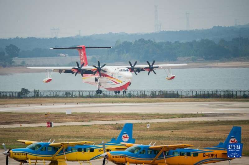 9月27日,“鲲龙”AG600M在漳河机场降落。