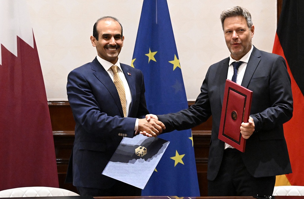 当地时间2022年5月20日,德国柏林,德国经济部长哈贝克与卡塔尔能源事务国务大臣卡比在柏林签署了两国深化能源领域伙伴关系的协议。