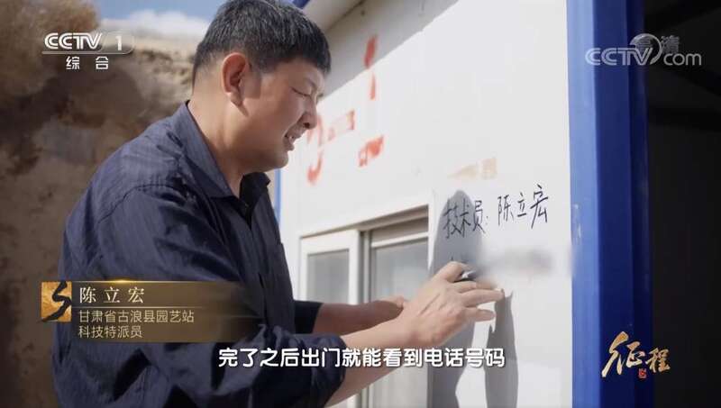甘肃省古浪县园艺站科技特派员 陈立宏:就是方便联系。因为他们在棚里栽培瓜,出门就能看到电话号码,联系更方便一些。