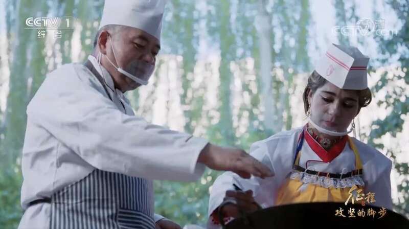 新疆塔县马尔洋乡皮勒村第一书记 热合曼·吾甫尔:今天下午我们学的是新疆拉面,有两步,第一个是先把面下到锅里以后,等面熟了我们再进行第二步,炒菜。好,大家都认认真真地看着,都注意看我这儿。