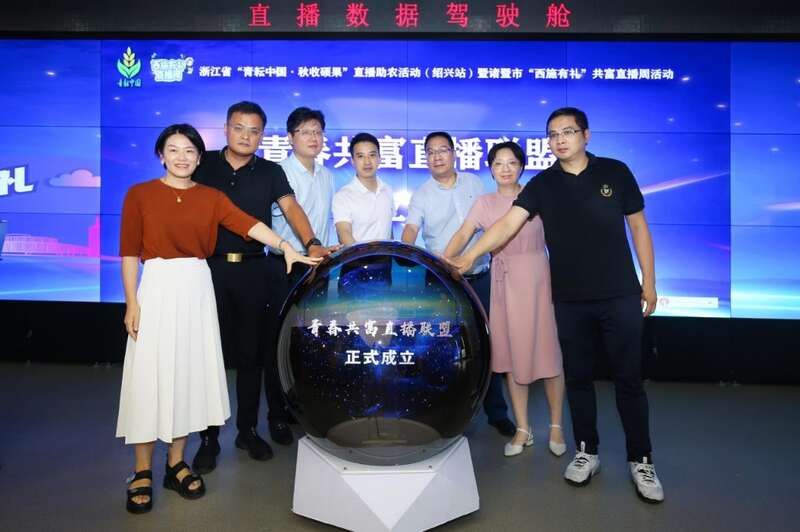 9月28日,浙江省“青耘中国·秋收硕果”直播助农活动(绍兴站)暨诸暨市“西施有礼”共富直播周活动在诸暨市启动。团诸暨市委供图本次直播周活动由共青团浙江省委、共青团绍兴市委主办,共青团诸暨市委等6家单位共同承办,青年主播、青年志愿者、直播团队、在校大学生等积极报名参加,各路青年才俊以“直播+短视频”的形式,为诸暨当地特色产品宣传代言,推动产业振兴,在乡村振兴的道路上展现青年风采。“今天是参加‘西施有礼’直播周活动的第一天,我们上架了15款饰品,销售额已超5万元。”启动仪式场外连线时,诸暨语夏珍珠饰品负责人介绍了店铺参加直播周活动的情况。“‘西施有礼’共富直播活动已开启57个直播间,直接销售额近百万元”。共青团诸暨市委书记周天说,通过前期预热和活动,诸暨市的农特产品吸引了不少市内外电商企业、采购商,目前已与8家采购单位签订协议,销售额超270万元。活动现场还举行了“青耘兴诸”直播联盟成立仪式以及“青春共富直播间”授牌仪式,并为参与助农直播活动青年代表颁发“青耘助农公益大使”证书。共富直播周活动期间,还将以“西施”核心文化元素为主题,举办直播大学堂、醉美乡村景、缤纷夜集市等直播活动。接下来,共青团诸暨市委将持续打造诸暨“直播电商新经济”,为当地的西施石笕、同山烧酒、次坞打面、枫桥香榧、山下湖珍珠等四大特色产业推广助力。