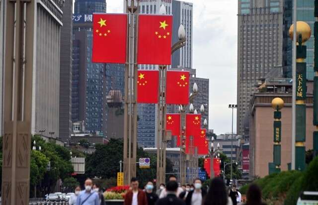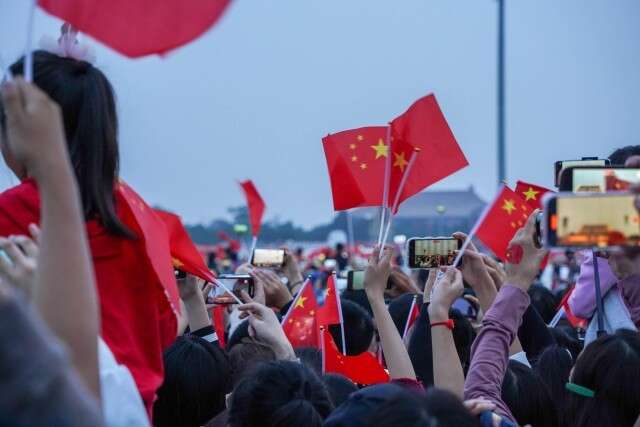 各地街头纷纷挂起五星红旗