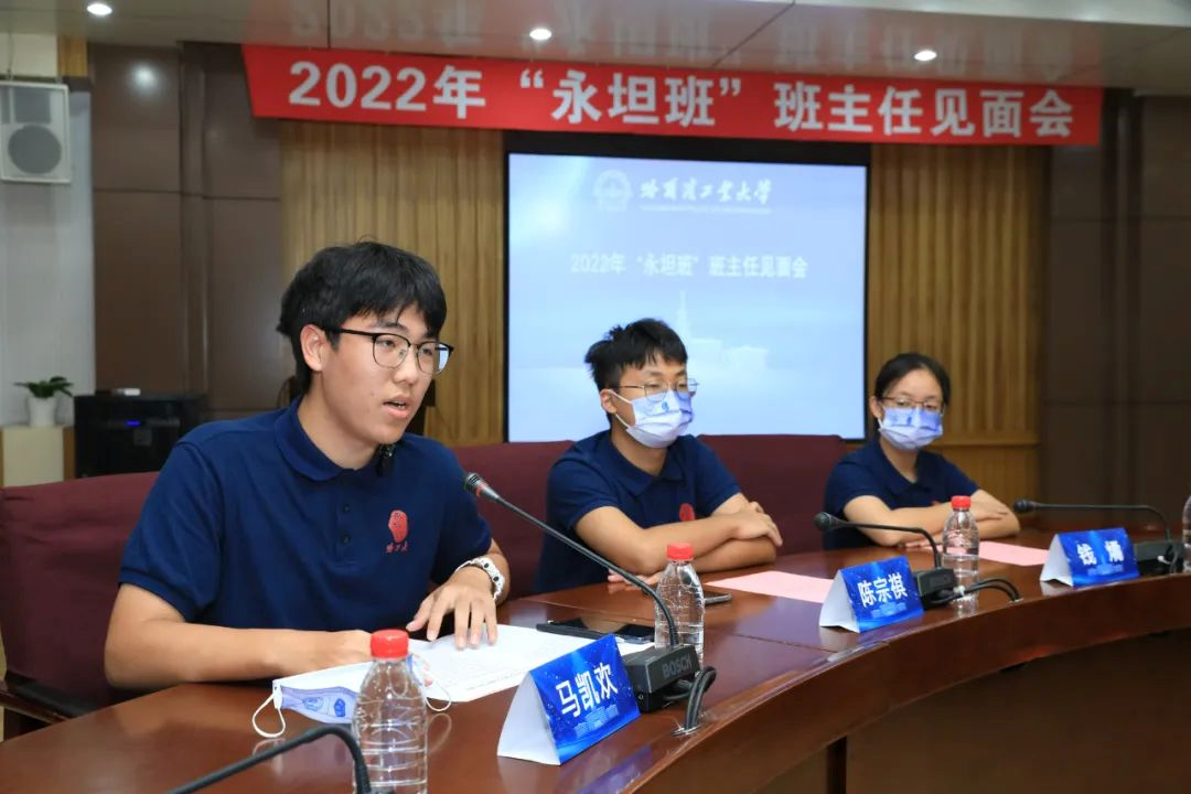 2022级永坦班班长马凯欢介绍了班级同学入学以来的学习生活情况。他表示:“我们将在哈工大优良校风学风熏陶下,不辜负坦先生的期望,心系家国,砥砺前行,努力成长为国之栋梁。”