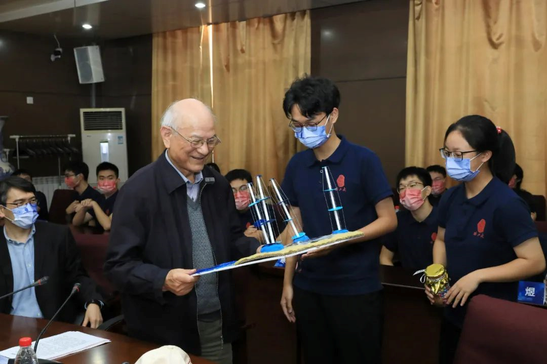 最后,永坦班学生代表向刘永坦院士赠送了同学们亲手制作的雷达模型和许愿瓶。