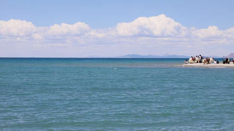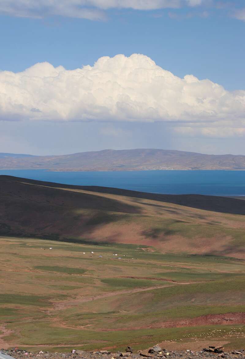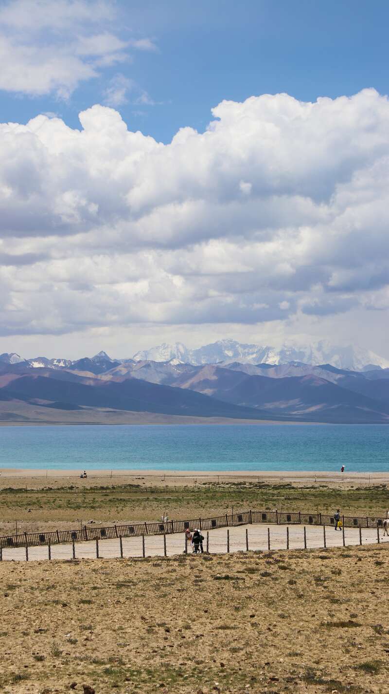 从空中俯瞰,她就像一面巨大的宝镜,镶嵌在藏北高原上。苍茫的云海,静默的山峦,蔚蓝的湖水,她是无数亲眼见过或未见过的人在心里默念的"纳木错"。