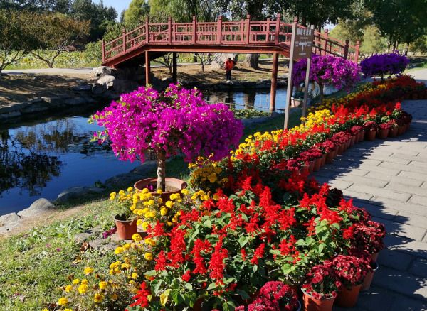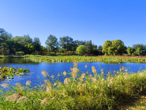 2022年10月4日,北京,天气晴好,圆明园遗址公园内五彩斑斓,秋色宜人,美不胜收。