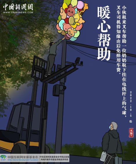 近日,山东济南,深夜11点,一位奶奶看着被挂在电线上的一捆气球,不舍离去,邹先生看到后,租来叉车,在保障自身安全的情况下将该捆气球成功取下。叉车司机得知缘由后表示用车免费。