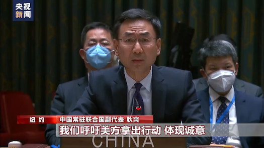 中国常驻联合国副代表 耿爽:历史经验表明,对话协商是解决半岛问题的唯一正确出路。如果对话推进顺利,半岛局势就会相对稳定;如果对话陷入停滞,甚至出现倒退,半岛局势就会紧张升级。我们呼吁美方拿出行动,体现诚意,切实解决朝方正当合理关切,为重启对话创造条件。
