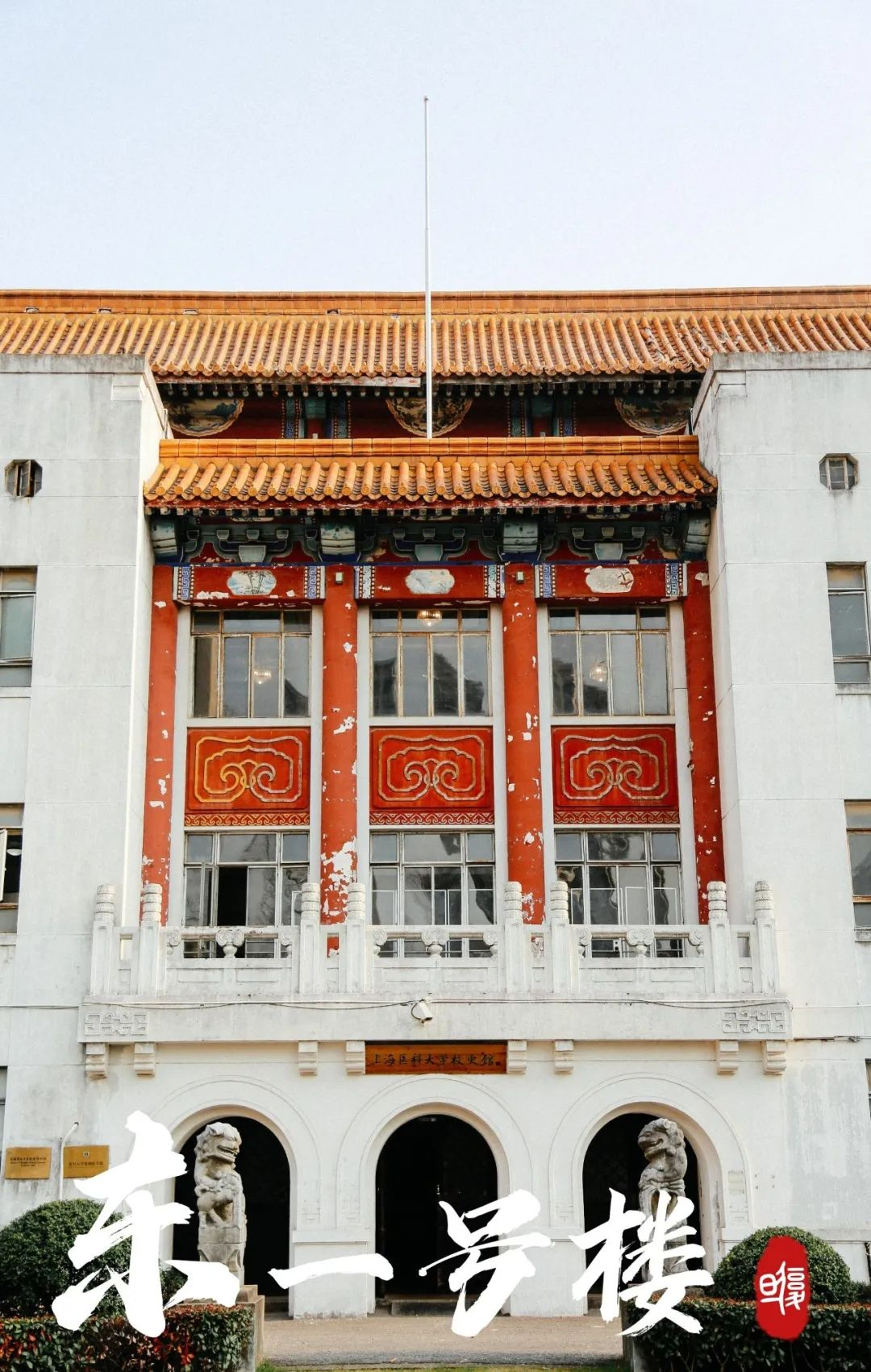 红色清水砖墙、明黄色琉璃瓦顶,老虎窗、几何图案、巴洛克式庭院,中西建筑之美,在这座上医最古老建筑上实现了完美结合。