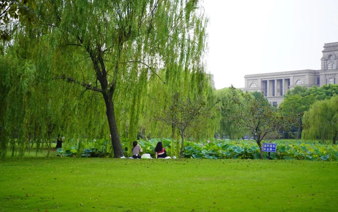 一河两端的日湖和月湖是江湾校区“一横两纵”布局的重要组成部分,二者东西相望,日月和合,风格迥异,动静相宜。微风吹过湖面,也轻轻扬起你的衣角。