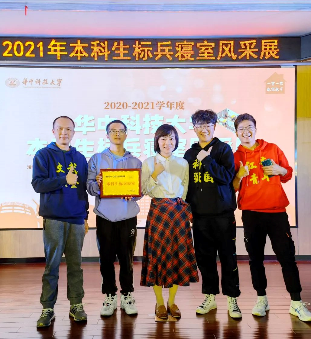 图为陈俊所在寝室获得校“标兵寝室”称号