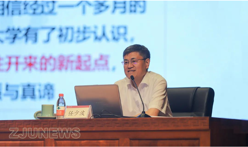 任少波讲述了浙江大学125年的发展历程,结合对浙大校歌校训、浙大精神、浙大传统和战略导向的解读,系统阐述了学校独特的精神气质和良好的发展态势,并激励同学们将浙江大学125年办学历程形成的精神文化作为“尊德性道问学”的起点,从中汲取成长的养分和奋进动力。