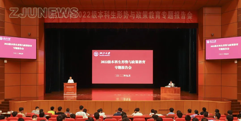 9月23日,浙江大学举行2022级本科生形势与政策教育专题报告会。校党委书记任少波围绕“发扬光荣传统,勇担时代使命——做堪当民族复兴重任的时代新人”主题,以学长、师长的身份,为同学们带来精彩的报告会。