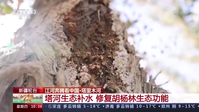 总台记者苏蒙:这里是地处塔里木河干流的新疆沙雅县天然胡杨林保护区,我现在置身于470万亩的天然胡杨林中。