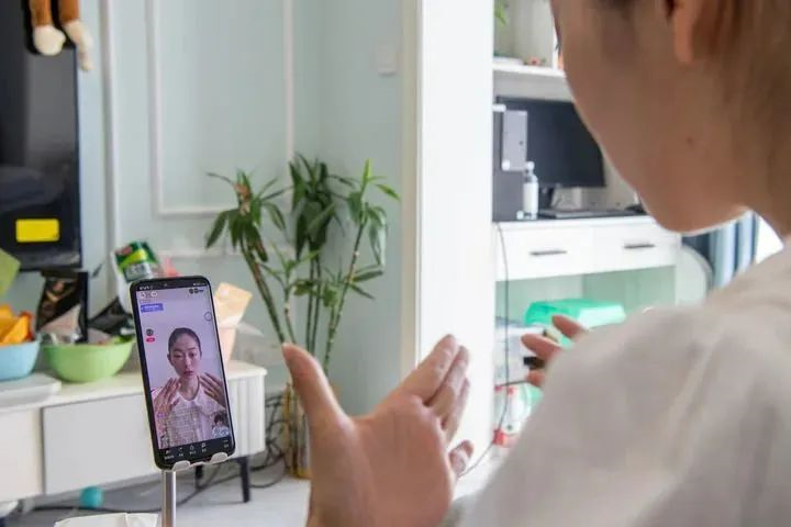谭婷在家里通过短视频平台直播向听障人士解答法律问题