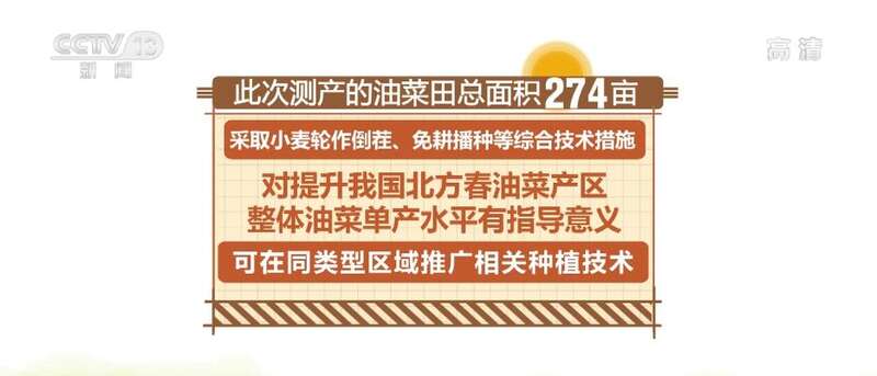 此次测产的油菜田总面积274亩,专家组一致认为,该油菜田采取小麦轮作倒茬、免耕播种等综合技术措施,增产效果显著,实现良种良法配套、农机农艺融合和农业绿色可持续发展,对提升我国北方春油菜产区整体油菜单产水平具有重要指导意义,可在同类型区域推广相关种植技术。