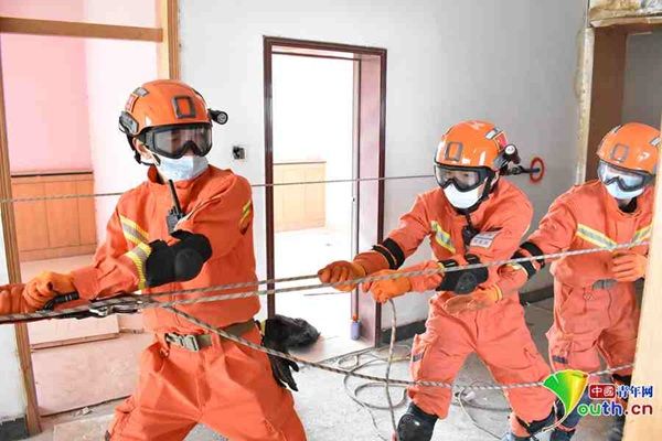 新疆森林消防总队巴州支队阿克苏大队三中队中队长张淙源正在训练。通讯员供图