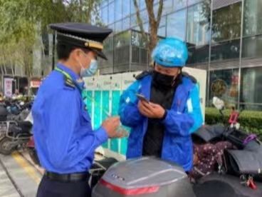 同时,在常态化疫情防控的背景下,针对外卖骑手等流动人群,新虹街道还联合第三方力量推出了“移动场所码”。城管队员在巡查过程中,指导快递外卖人员扫码报备个人情况,相关从业信息及核酸检测等情况会实时传输至街道城运中心,系统会对不符合核酸检测规定、随申码异常的快递外卖小哥,及时发出预警信号,消除防疫安全隐患。