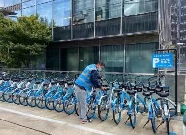 新虹城管中队副中队长顾春晖介绍,虹桥商务区大概有10万名白领,从地铁站到公司“最后一公里”出行需求量大,以前街面没有禁停要求时,大量共享单车随意停放在路边,严重影响市容。