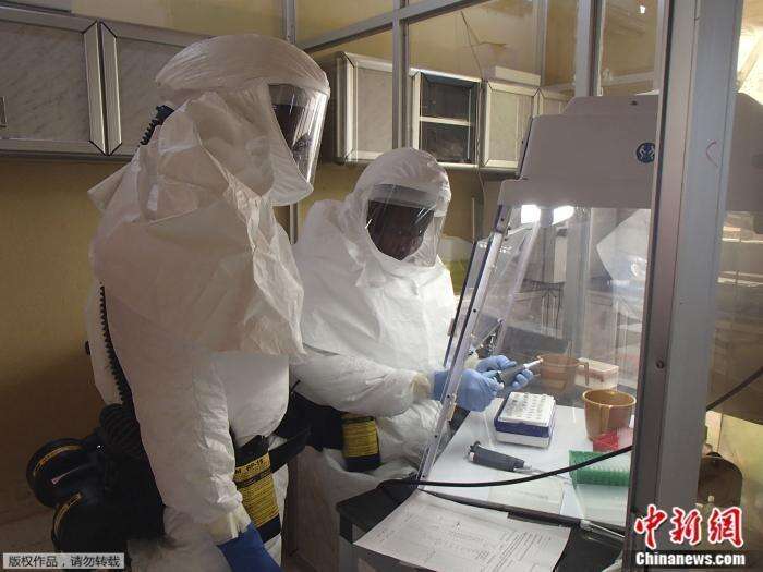 资料图:美国马里兰州德特里克堡陆军传染病医学研究所技术人员,在实验室里进行化验。