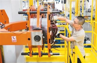 位于江苏如皋经济技术开发区的威格(江苏)电气设备有限公司是一家主要生产低压以及中高压电机的外资企业。图为在其生产车间内,工人正在赶制出口海外的电机产品。徐 慧摄(人民视觉)