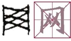 网的甲骨文一眼看上去非常的形象,就是用木棍做支架,编织而成的罗网,用来捕捉鱼和鸟兽。