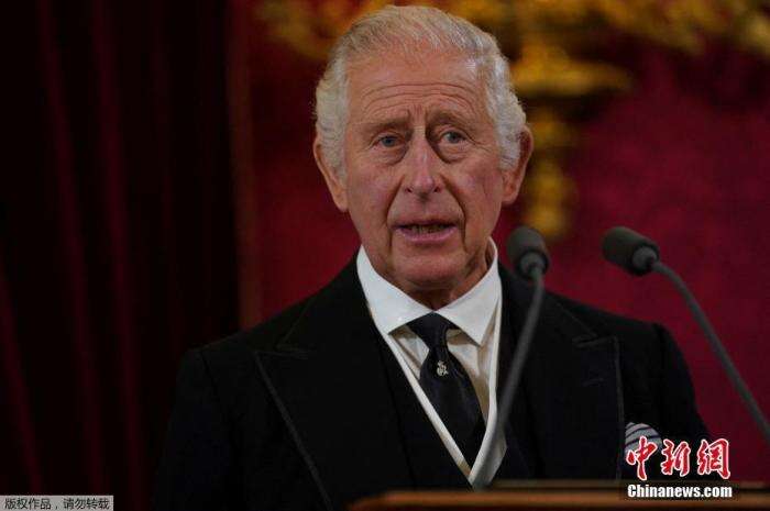 当地时间9月10日,英国国王查尔斯三世在圣詹姆斯宫举行的历史性仪式上正式登基。