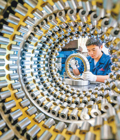 河南省洛阳市利美克轴承传动有限公司技术人员正在检测一批轴承。
