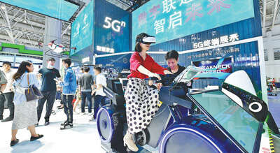 2021年,福建省数字经济增加值达2.3万亿元,占GDP比重约47%,数字福建建设取得突出成效。图为2021年4月在福州举行的第四届数字中国建设峰会主场馆5G体验区。