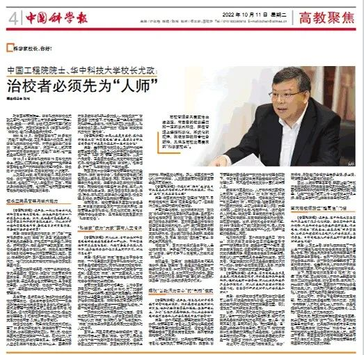 《中国科学报》:近年来,华中科技大学在学科布局上做了很多优化调整,整体学科分布更加均衡,而工科的专业优势也并没有改变。作为校长,你提出“顶天立地、追求卓越”的办学理念,以新工科建设深化工程师人才培养改革。在你看来,目前高校在人才培养上有哪些需要面对的共性问题?